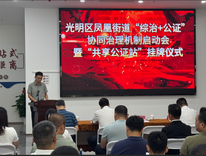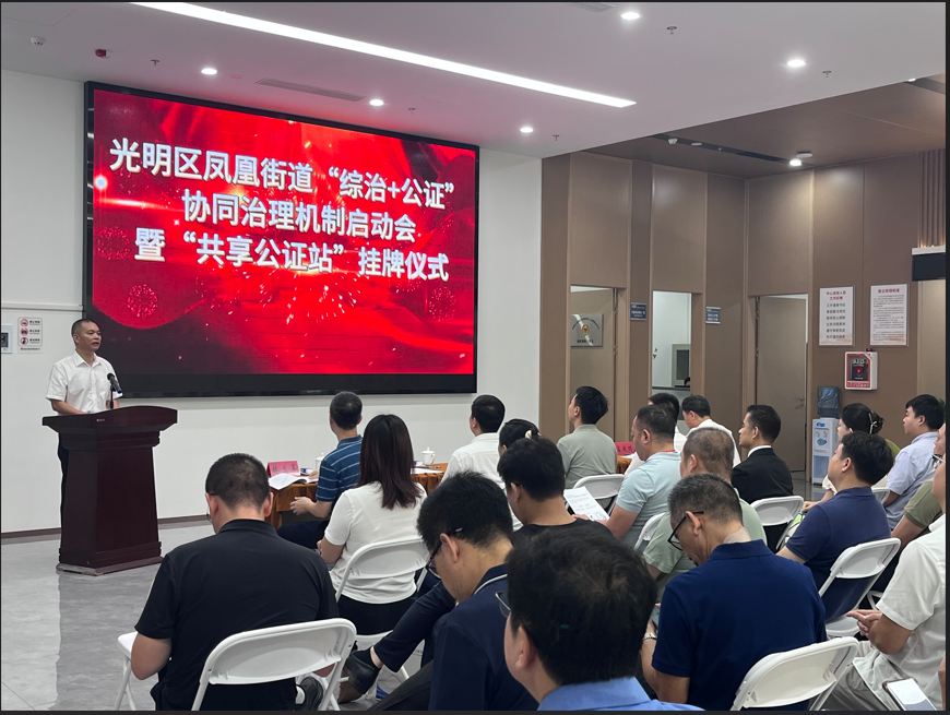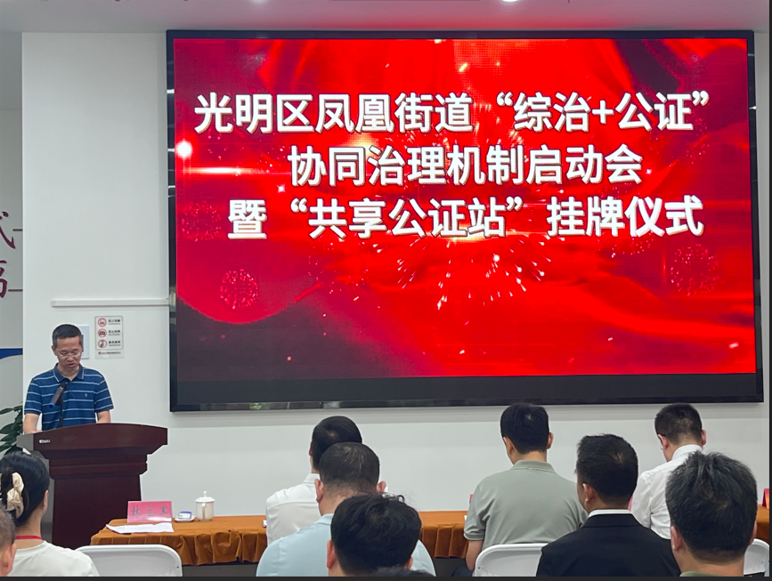 光明区凤凰街道综治中心、前海公证处探索光明区乃至全市综治中心“共享公证站”建设,将为全市公证行业参与基层治理做出新的示范。