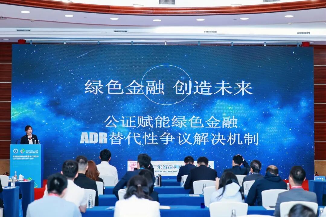 本次展会上,深圳市前海公证处公证员、深圳市证信民商事调解中心副理事长麦冬樱在专业交流会上做主题发言,深度聚焦“公证赋能绿色金融ADR(替代性争议解决)机制”,详解如何以公证工具为绿色金融项目的合规性、真实性“保驾护航”,并依托调解这一高效灵活的ADR机制,为金融债权纠纷非诉化解提供专业解决方案。